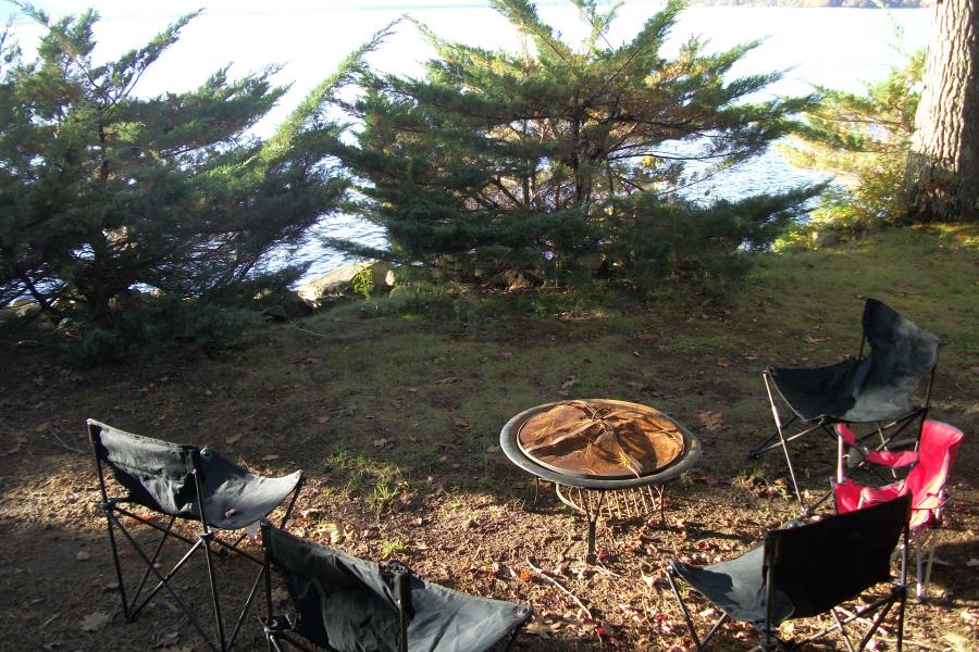 An elevated fire pit next to the water. Toast marshmallows or even cook hotdogs over the embers.