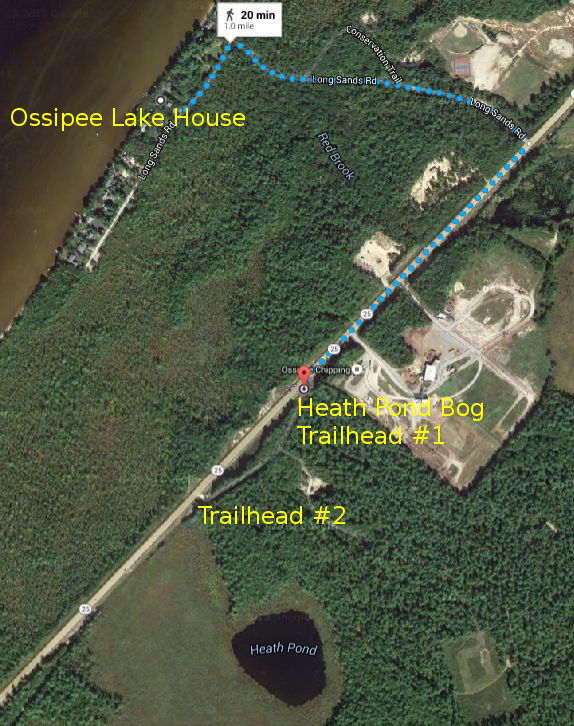 Map from Ossipee Lake House to Ossipee Pine Barrens