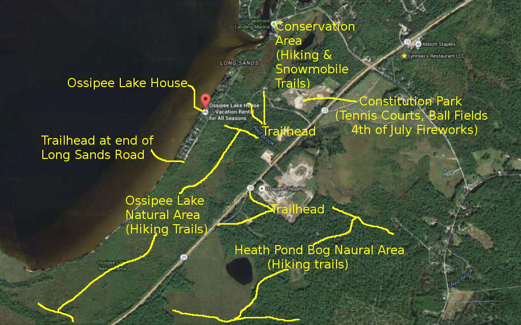 Hikes start at Ossipee Lake House -- Hiking trails start out the door along Long Sands Road.