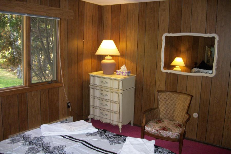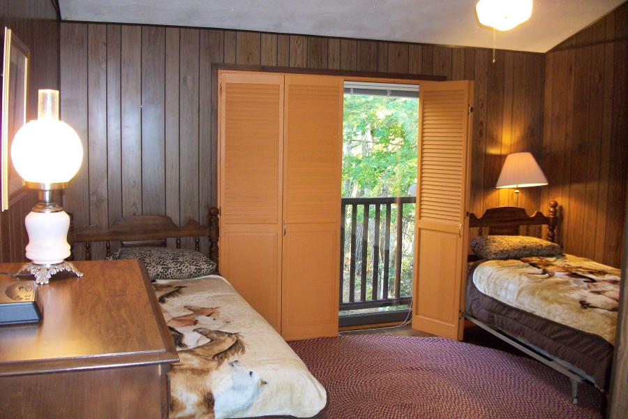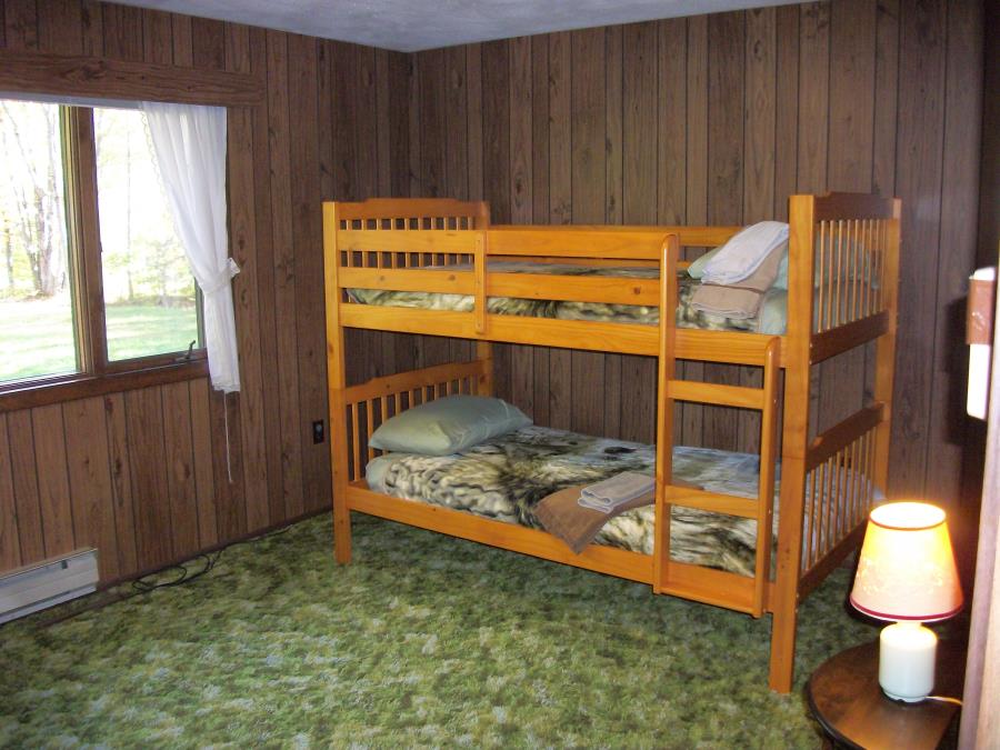 Screened porch overlooks the lake and leads to the deck. Listen to the loons at night while playing games under the light and ceiling fan.