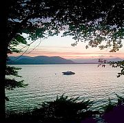 Serene evenings at Ossipee Lake House for you and your guests. This is the view from the deck. The Ossipee Mountains are on the left.